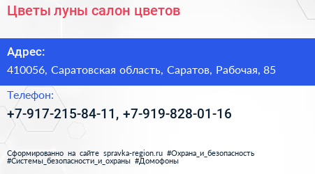 Цветы луны, салон цветов по адресу 410056, Саратовская область, Саратов, Рабочая, 85 в дальнейшем Организация, размещена в следующих категориях: