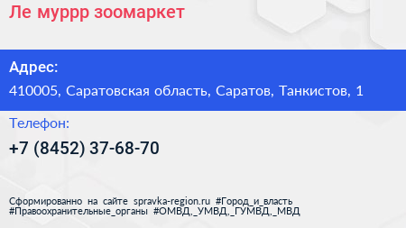 Ле`муррр, зоомаркет по адресу 410005, Саратовская область, Саратов, Танкистов, 1 в дальнейшем Организация, размещена в следующих категориях: