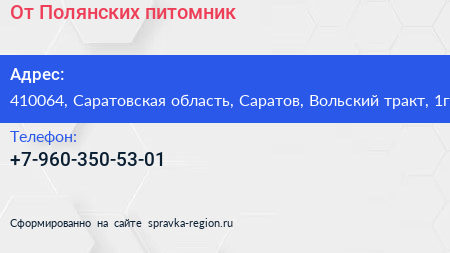 От Полянских, питомник по адресу 410064, Саратовская область, Саратов, Вольский тракт, 1г в дальнейшем Организация, размещена в следующих категориях: