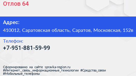 Отлов 64 по адресу 410012, Саратовская область, Саратов, Московская, 152в в дальнейшем Организация, размещена в следующих категориях: