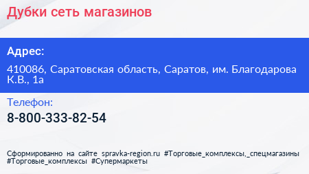 Дубки, сеть магазинов по адресу 410086, Саратовская область, Саратов, им. Благодарова К.В., 1а в дальнейшем Организация, размещена в следующих категориях: