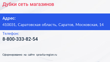 Дубки, сеть магазинов по адресу 410031, Саратовская область, Саратов, Московская, 14 в дальнейшем Организация, размещена в следующих категориях: