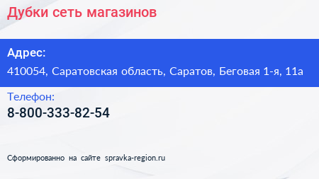 Дубки, сеть магазинов по адресу 410054, Саратовская область, Саратов, Беговая 1-я, 11а в дальнейшем Организация, размещена в следующих категориях: