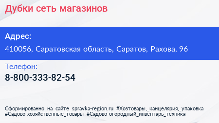 Дубки, сеть магазинов по адресу 410056, Саратовская область, Саратов, Рахова, 96 в дальнейшем Организация, размещена в следующих категориях: