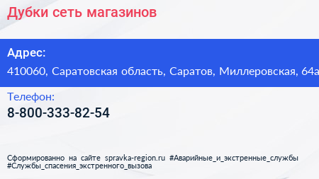 Дубки, сеть магазинов по адресу 410060, Саратовская область, Саратов, Миллеровская, 64а в дальнейшем Организация, размещена в следующих категориях: