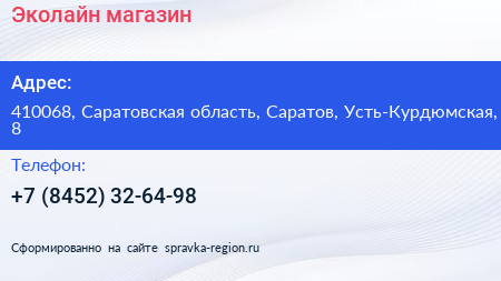 Эколайн, магазин по адресу 410068, Саратовская область, Саратов, Усть-Курдюмская, 8 в дальнейшем Организация, размещена в следующих категориях: