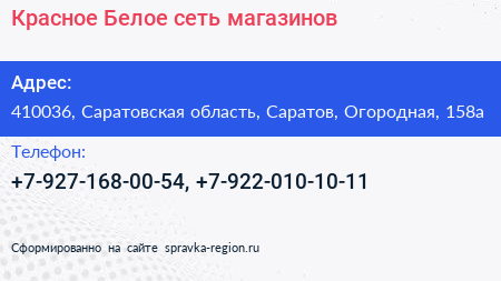 Красное & Белое, сеть магазинов по адресу 410036, Саратовская область, Саратов, Огородная, 158а в дальнейшем Организация, размещена в следующих категориях: