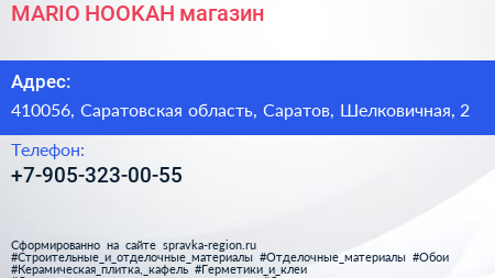 MARIO HOOKAH, магазин по адресу 410056, Саратовская область, Саратов, Шелковичная, 2 в дальнейшем Организация, размещена в следующих категориях: