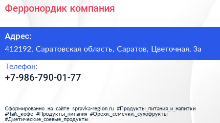 Ферронордик, компания по адресу 412192, Саратовская область, Саратов, Цветочная, 3а в дальнейшем Организация, размещена в следующих категориях: