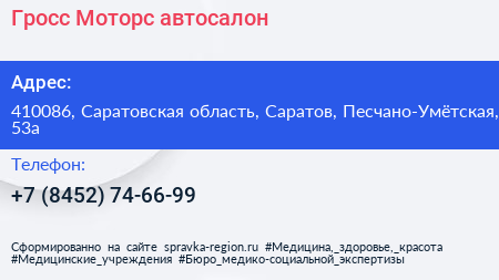 Гросс Моторс, автосалон по адресу 410086, Саратовская область, Саратов, Песчано-Умётская, 53а в дальнейшем Организация, размещена в следующих категориях: