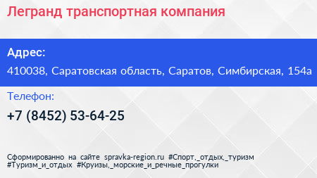 Легранд, транспортная компания по адресу 410038, Саратовская область, Саратов, Симбирская, 154а в дальнейшем Организация, размещена в следующих категориях:
