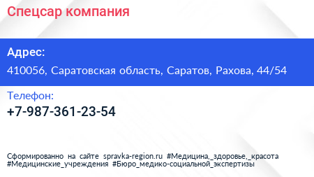 Спецсар, компания по адресу 410056, Саратовская область, Саратов, Рахова, 44/54 в дальнейшем Организация, размещена в следующих категориях: