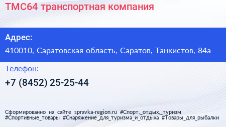 ТМС64, транспортная компания по адресу 410010, Саратовская область, Саратов, Танкистов, 84а в дальнейшем Организация, размещена в следующих категориях: