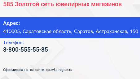 585 Золотой, сеть ювелирных магазинов по адресу 410005, Саратовская область, Саратов, Астраханская, 150 в дальнейшем Организация, размещена в следующих категориях: