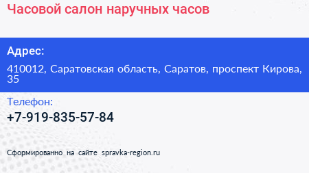Часовой, салон наручных часов по адресу 410012, Саратовская область, Саратов, проспект Кирова, 35 в дальнейшем Организация, размещена в следующих категориях: