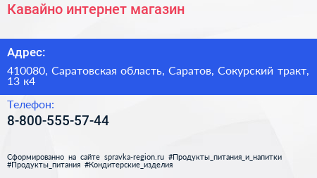 Кавайно, интернет-магазин по адресу 410080, Саратовская область, Саратов, Сокурский тракт, 13 к4 в дальнейшем Организация, размещена в следующих категориях: