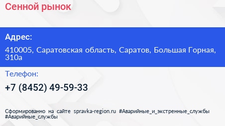 Сенной, рынок по адресу 410005, Саратовская область, Саратов, Большая Горная, 310а в дальнейшем Организация, размещена в следующих категориях: