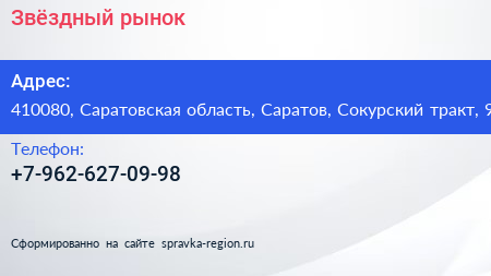 Звёздный, рынок по адресу 410080, Саратовская область, Саратов, Сокурский тракт, 9 в дальнейшем Организация, размещена в следующих категориях: