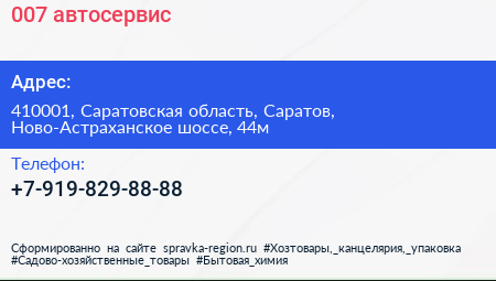 007, автосервис по адресу 410001, Саратовская область, Саратов, Ново-Астраханское шоссе, 44м в дальнейшем Организация, размещена в следующих категориях: