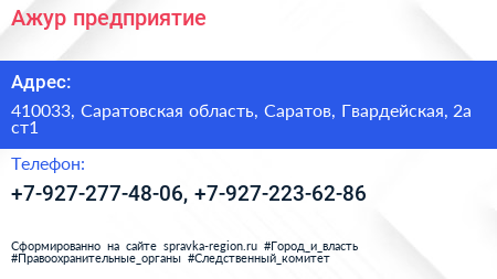 Ажур, предприятие по адресу 410033, Саратовская область, Саратов, Гвардейская, 2а ст1 в дальнейшем Организация, размещена в следующих категориях: