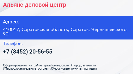 Альянс, деловой центр по адресу 410017, Саратовская область, Саратов, Чернышевского, 90 в дальнейшем Организация, размещена в следующих категориях:
