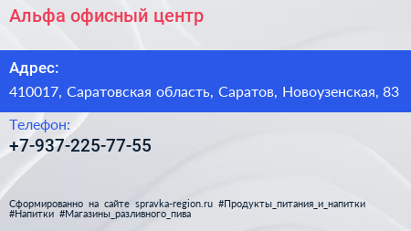 Альфа, офисный центр по адресу 410017, Саратовская область, Саратов, Новоузенская, 83 в дальнейшем Организация, размещена в следующих категориях: