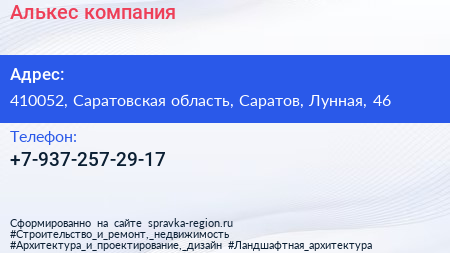 Алькес, компания по адресу 410052, Саратовская область, Саратов, Лунная, 46 в дальнейшем Организация, размещена в следующих категориях: