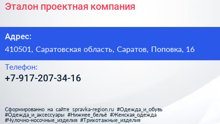 Эталон, проектная компания по адресу 410501, Саратовская область, Саратов, Поповка, 16 в дальнейшем Организация, размещена в следующих категориях: