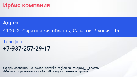 Ирбис, компания по адресу 410052, Саратовская область, Саратов, Лунная, 46 в дальнейшем Организация, размещена в следующих категориях: