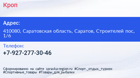Кроп по адресу 410080, Саратовская область, Саратов, Строителей пос, 1/6 в дальнейшем Организация, размещена в следующих категориях:
