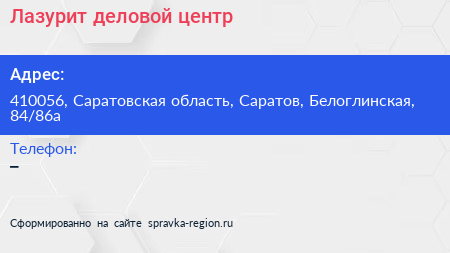 Лазурит, деловой центр по адресу 410056, Саратовская область, Саратов, Белоглинская, 84/86а в дальнейшем Организация, размещена в следующих категориях: