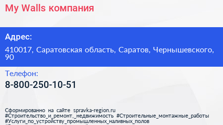 My Walls, компания по адресу 410017, Саратовская область, Саратов, Чернышевского, 90 в дальнейшем Организация, размещена в следующих категориях: