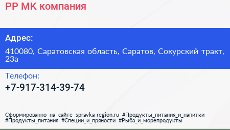 РР|MK, компания по адресу 410080, Саратовская область, Саратов, Сокурский тракт, 23а в дальнейшем Организация, размещена в следующих категориях: