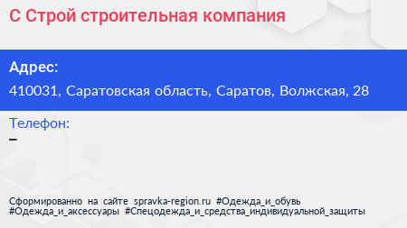 С-Строй, строительная компания по адресу 410031, Саратовская область, Саратов, Волжская, 28 в дальнейшем Организация, размещена в следующих категориях: