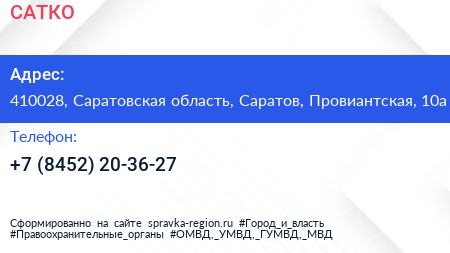 САТКО по адресу 410028, Саратовская область, Саратов, Провиантская, 10а в дальнейшем Организация, размещена в следующих категориях: