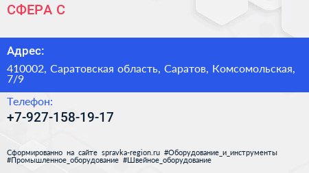 СФЕРА-С по адресу 410002, Саратовская область, Саратов, Комсомольская, 7/9 в дальнейшем Организация, размещена в следующих категориях: