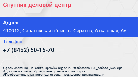 Спутник, деловой центр по адресу 410012, Саратовская область, Саратов, Аткарская, 66г в дальнейшем Организация, размещена в следующих категориях: