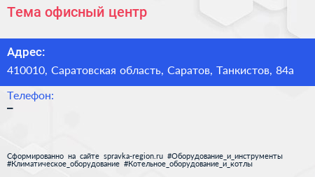 Тема, офисный центр по адресу 410010, Саратовская область, Саратов, Танкистов, 84а в дальнейшем Организация, размещена в следующих категориях: