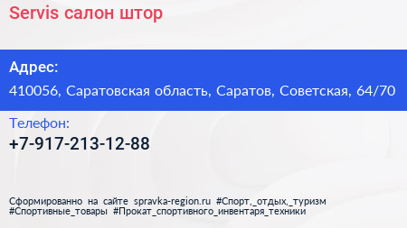 Servis, салон штор по адресу 410056, Саратовская область, Саратов, Советская, 64/70 в дальнейшем Организация, размещена в следующих категориях: