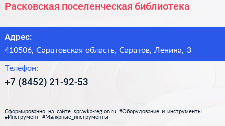 Расковская поселенческая библиотека по адресу 410506, Саратовская область, Саратов, Ленина, 3 в дальнейшем Организация, размещена в следующих категориях: