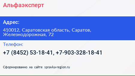 Альфаэксперт по адресу 410012, Саратовская область, Саратов, Железнодорожная, 72 в дальнейшем Организация, размещена в следующих категориях: