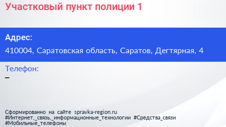 Участковый пункт полиции №1 по адресу 410004, Саратовская область, Саратов, Дегтярная, 4 в дальнейшем Организация, размещена в следующих категориях: