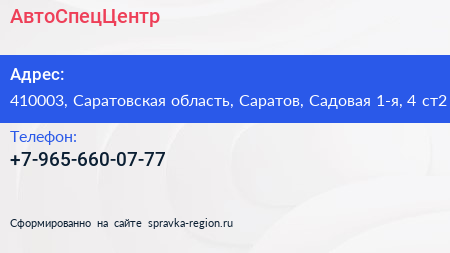 АвтоСпецЦентр по адресу 410003, Саратовская область, Саратов, Садовая 1-я, 4 ст2 в дальнейшем Организация, размещена в следующих категориях: