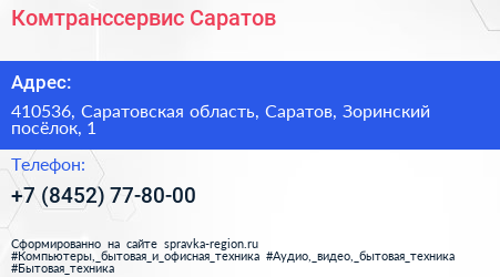 Комтранссервис-Саратов по адресу 410536, Саратовская область, Саратов, Зоринский посёлок, 1 в дальнейшем Организация, размещена в следующих категориях: