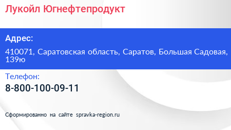 Лукойл-Югнефтепродукт по адресу 410071, Саратовская область, Саратов, Большая Садовая, 139ю в дальнейшем Организация, размещена в следующих категориях: