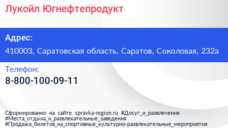Лукойл-Югнефтепродукт по адресу 410003, Саратовская область, Саратов, Соколовая, 232а в дальнейшем Организация, размещена в следующих категориях:
