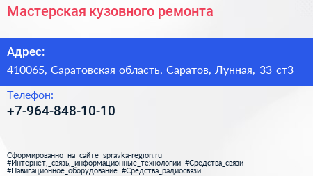 Мастерская кузовного ремонта по адресу 410065, Саратовская область, Саратов, Лунная, 33 ст3 в дальнейшем Организация, размещена в следующих категориях: