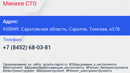 Минаев, СТО по адресу 410049, Саратовская область, Саратов, Томская, к178 в дальнейшем Организация, размещена в следующих категориях: