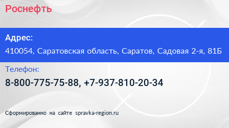 Роснефть по адресу 410054, Саратовская область, Саратов, Садовая 2-я, 81Б в дальнейшем Организация, размещена в следующих категориях: