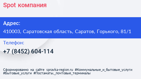 Spot, компания по адресу 410003, Саратовская область, Саратов, Горького, 81/1 в дальнейшем Организация, размещена в следующих категориях: